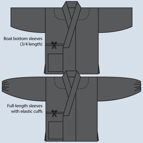 - Boat bottom sleeves (3/4 length) with plain-hemmed cuffs (no elastic)