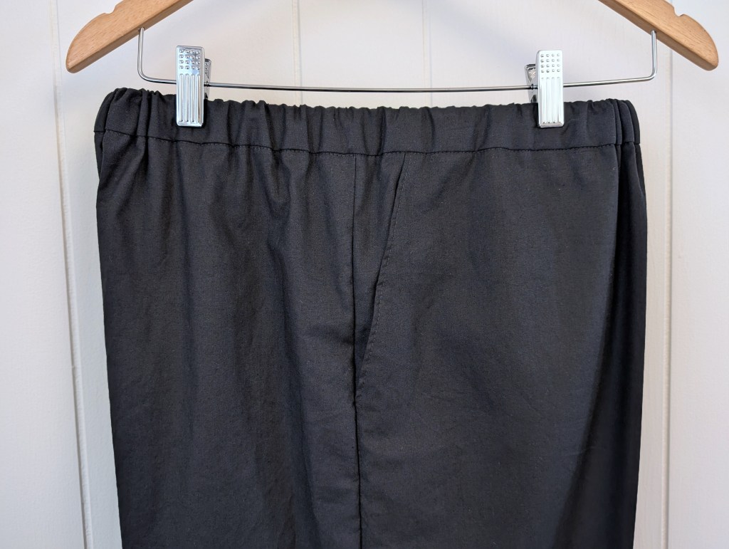 | Linen/rayon blend | 55% linen, 45% rayon | Black | Midweight fabric combines the softness and liquid drape of rayon with the woven texture of linen, without wrinkling nearly as much. Hand wash recommended. Works for all sleeve/pants styles. | +$30 |
