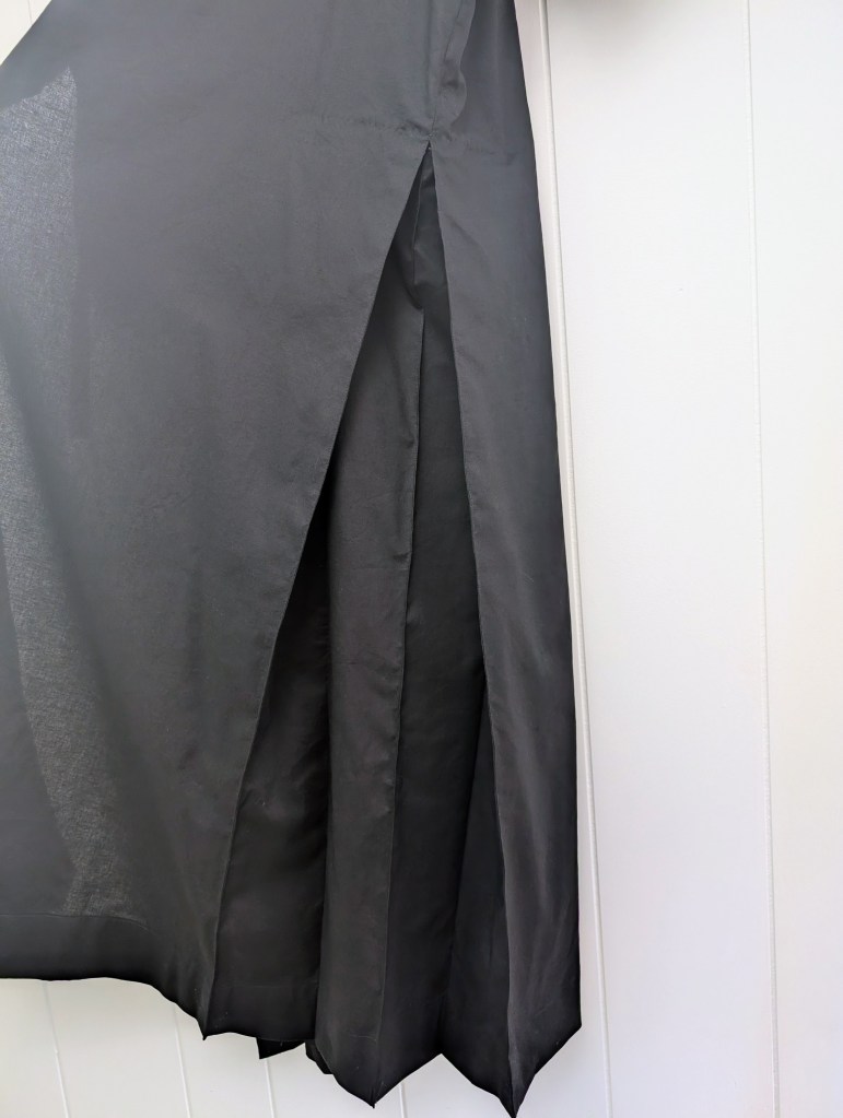 Kairyoe 改良服, literally “improved clothing,” were developed in the Meiji era to create a simpler and more practical outer garment that was easier to wear and travel in, but still remained recognizable as a Buddhist robe. With shortened kimono-length sleeves, two side pleats, and a flattering silhouette created by the slightly flared skirt, the kairyoe is ideal for making pastoral visits, traveling, and outdoor functions. Kairyoe are traditionally worn over kimono.