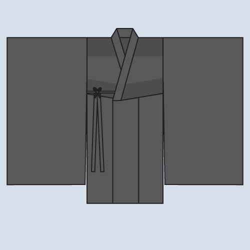 Known colloquially as koromo 衣 (“robe,” “clothing”), a more formal name for the full-sleeved, black outer priest robe is jikitotsu 直綴/裰 (“directly sewn”). This name comes from the fact that the upper garment, consisting of bodice and long sleeves, was originally separate from the lower pleated skirt, which were later sewn together. Early forms of jikitotsu became popular in medieval China around the Song Dynasty and were worn by Buddhist monks, Daoists, and scholar-officials.