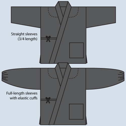 | Flannel | 100% cotton | Black | Everyone else thinks you’re wearing a samue, but you know you’re really wearing cozy flannel pajamas. Works for either sleeve style, but elastic pants cuffs only. | — |